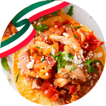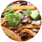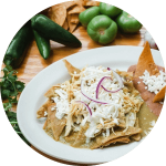 Totopos de maíz bañados con salsa verde, con crema y queso fresco. Elige tus acompañantes, todo te lo enviamos por separado.
