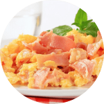 Huevos revueltos con ingredientes y acompañantes de tu elección. Tus acompañantes te los enviamos por separado.