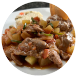 Tiritas de res cocinadas con jitomate, cebolla, ajo, papa y chile jalapeño (no pica). Acompáñalo con arroz o ensalada verde y frijoles refritos o puré de papa.