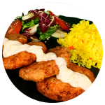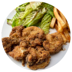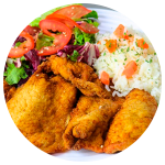 Milanesa de Pollo empanizada. Acompáñala con arroz o ensalada verde y papas a la francesa o puré de papa.