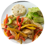 Fajitas de pollo preparadas con cebolla y pimientos. Te enviamos la salsa y tortillas por separado. Acompáñalas con arroz o ensalada verde y frijoles refritos o papas a la francesa.