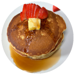 Hotcakes medianos (5) de harina de Avena. Acompañalos con fruta. Elige la miel que más te guste, te la enviamos por separado.