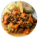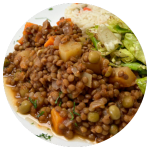 Guisado de carne molida de res con zanahoria, chícharo y papita en caldillo de jitomate. Acompáñalo con arroz o ensalada verde y puré de papa o frijoles refritos.