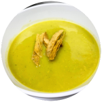 Crema de calabacita condimentada con cebolla y un toque de la casa.