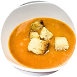 Crema de Jitomates rostizados al horno. Los croutones te los enviamos por separado.