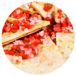 Tortillas de harina burrera (MEGA 40 cm.) a la plancha, con jamón de pavo y queso, cortada en 6 piezas. Te mandamos la salsa que elijas por separado.