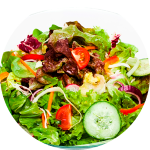 Ensalada completa elaborada con mezcla de Lechugas, Pasta corta fría, Queso panela, granos de Elote dulce, Jitomate, Pepino, Pimiento, Cebolla morada y Zanahoria. Elige tus toppings y el aderezo que más te guste.