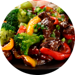 Ensalada Asiática cocinada en Wok con nuestra salsa Teriyaki. Láminas de Pollo, Piña, Col morada, Brócoli, Zanahoria, Chícharo chino, Apio, Pimiento, Pepino, Agucate, Jitomate, Almendra y Ajonjolí.